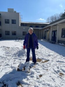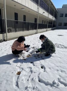 利用者さんと雪遊びしました。